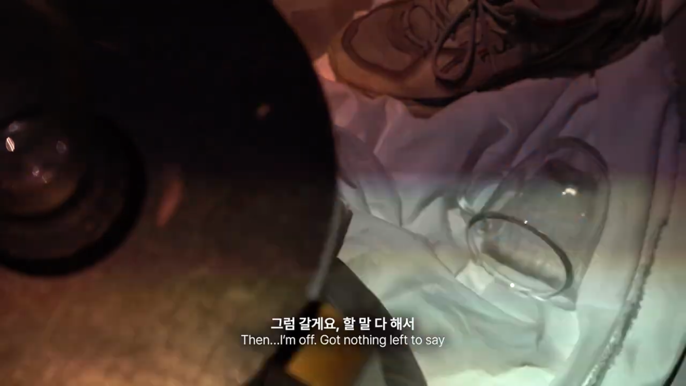 Hanul and I filmed at 서강대학교 X관 (Sogang University's Immersive Hall), where we had the freedom to project footage of our choice onto the plain walls in the hall. We utilized a mix of original footage and stock footage to create a variety of settings within an enclosed space. Drawings made on Procreate enhanced each frame with elements from the script. Visual inspiration was pulled from both Chungking Express (dir. Wong Kar-wai) and Dear Ex (dir. Mag Hsu and Hsu Chih-yen). IHNH was filmed, edited, and completed within 3 days.